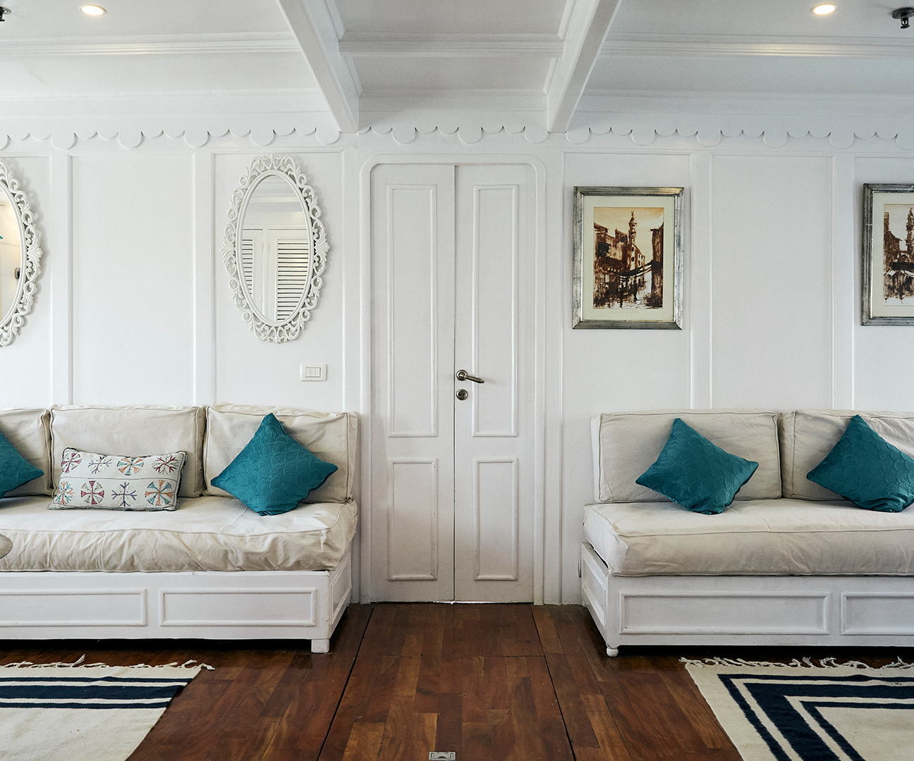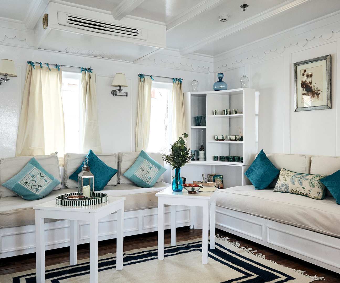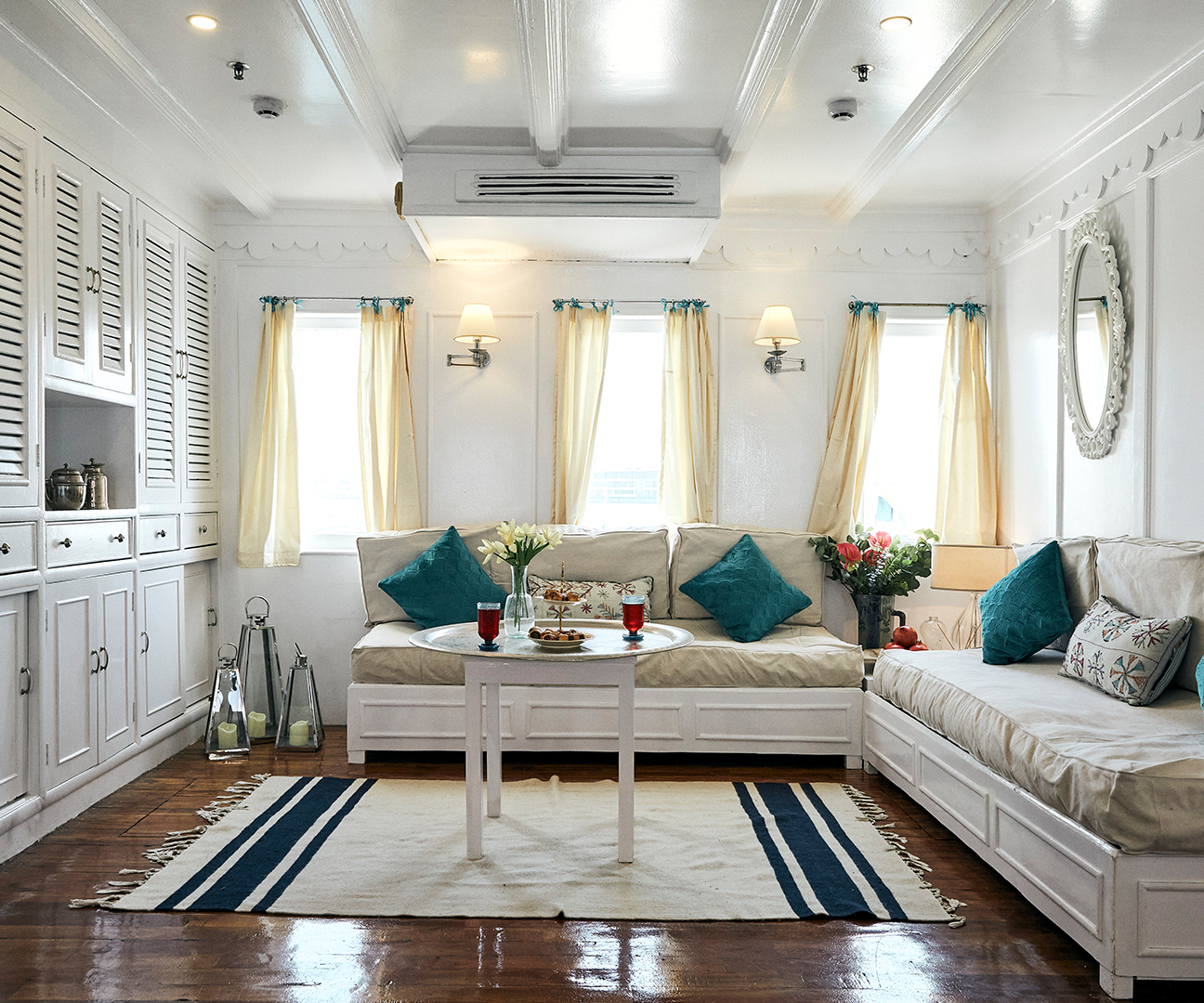 2 Suites and 4 standard cabins, i.e. a maximum of 12 passengers.